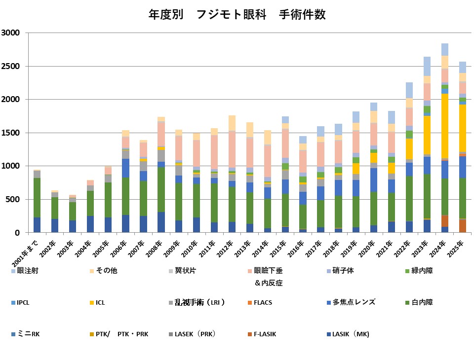 年度別 フジモト眼科本院 手術件数 (2025年12月現在)